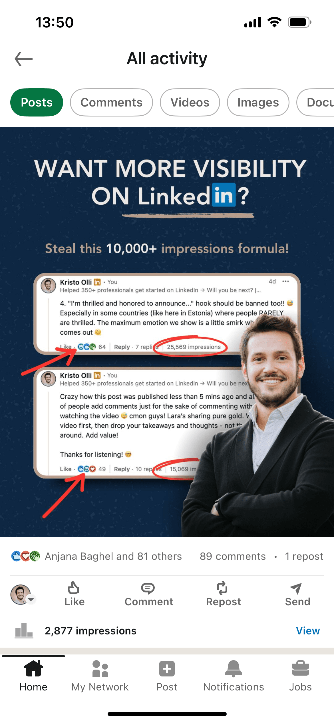 Pärast 7 aastat LinkedIn'is "luuramist" ja teistelt sisuloojatelt õppimist võtsin ma julguse kokku ja tegin oma esimese postituse.